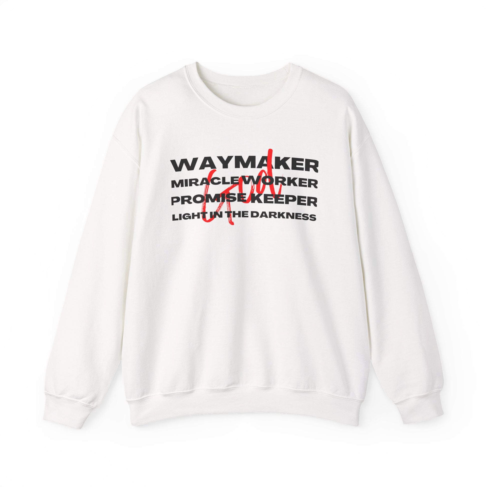 Not just a sweatshirt but a statement of unwavering faith allowing you to share your beliefs and inspire anyone that comes along your path. Embrace the power of faith in fashion with our powerful message of waymaker, miracle worker, promise keeper, light in the darkness-there is power in HIS word!