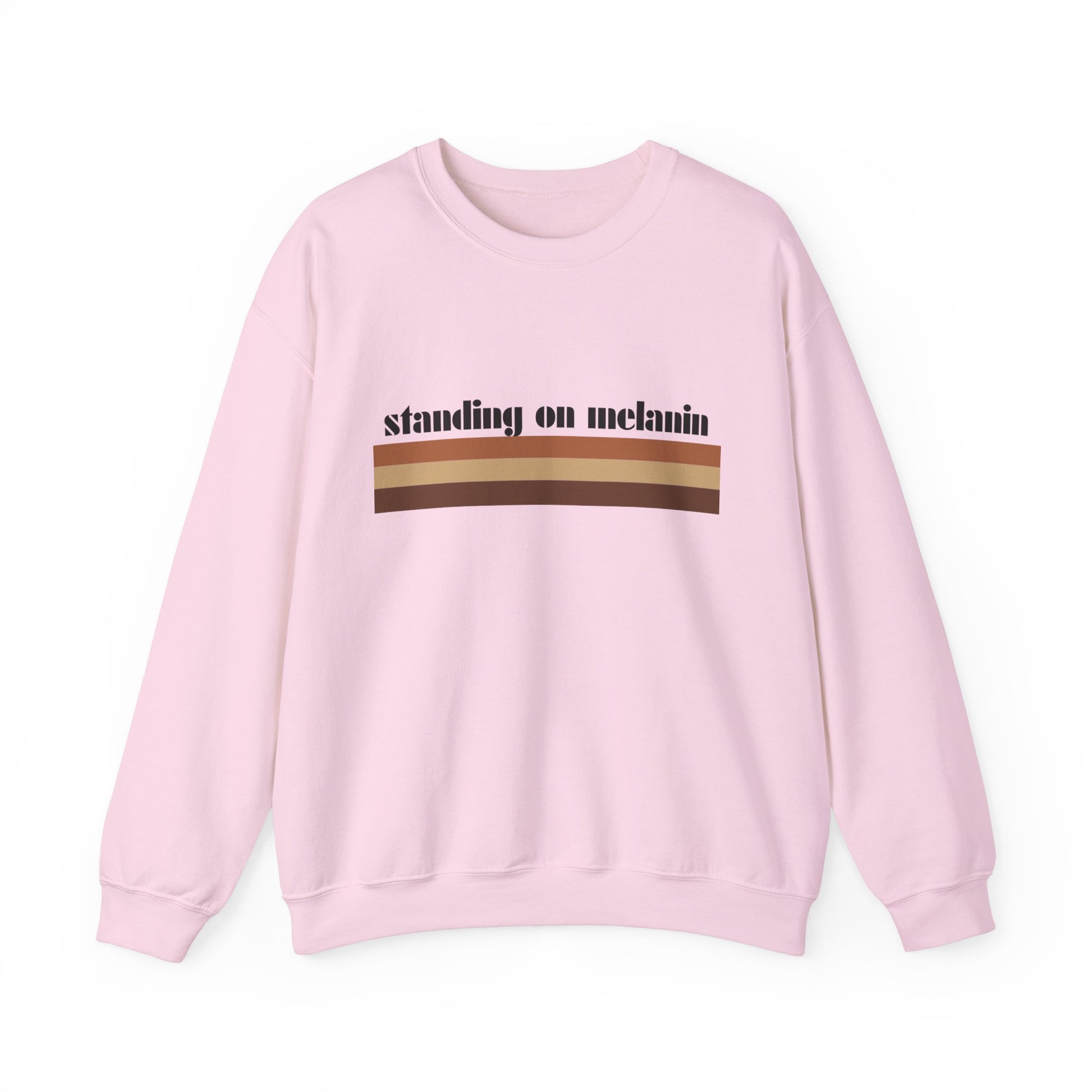 This sweatshirt is a statement of pride, power, and presence, made for those who carry culture wherever they go. The Standing on Melanin design celebrates the beauty, strength, and resilience of our roots while inspiring confidence in every stride.